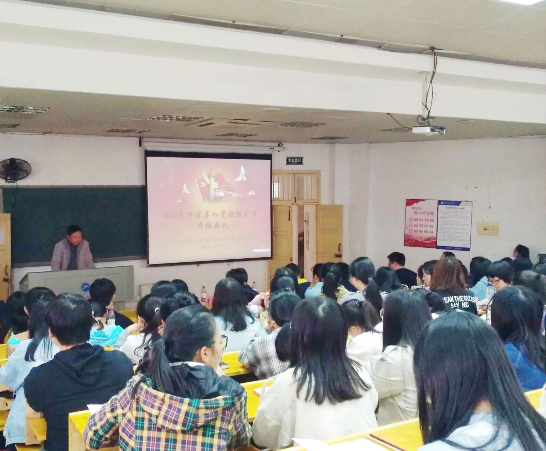 2018年10月16号,在十教东附楼103,由3044永利集团承办,物理电子与科学公司、生命与科学公司、艺术公司联合举办的2018年下半年入党积极分子开班典礼顺利举行。公司党校副董事长彭雪贵、物理电子与科学公司党委副书记兼分党校董事长杜鑫、生命与科学公司党委副书记兼分党校董事长罗玺、艺术公司党委副书记兼分党校董事长胡鹏以及各公司分管党建工作的员工辅导员出席了本次入党积极分子开班典礼。