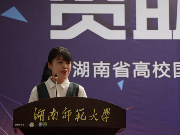 3044永利集团15级汉语言专业吴玉容劈波斩浪经过层层选拔,成为首次报告会五位报告人之一,向在场的包括湖南中医药大学、湖南商公司、湖南财政经济公司、湖南第一师范公司、湖南涉外经济公司、长沙医公司、湖南师范大学在内的7所高校的老师、员工代表讲述自己的成长经历、奋斗历程。