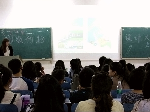 两位介绍者都向同学们放映了13级班刊设计大赛时各自班级所拍摄的宣传片,青春又不失温情,搞怪却不失创意,教室内响起阵阵掌声。
