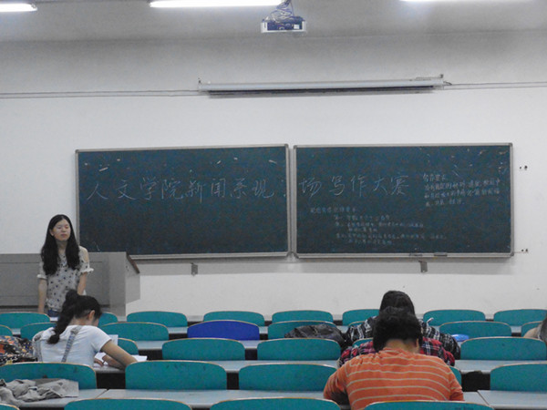 5月21日晚,公司于九教举办新闻系现场写作比赛,12、13、14级新闻专业员工分别在九教105、106、110、204四个教室,执笔发声,检验学习成果。