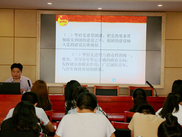 “各班在开展团组织生活会的时候,要让每个同学都能畅所欲言,真正发挥出团组织生活会在基层团组织建设中的积极作用。”在讲解共青团建设的基本要求时,罗振军老师以大家熟悉团组织生活会为例,生动形象地向大家讲解了“坚持党的基本路线不动摇”、“坚持先进性与群众性的统一”等一系列要求。