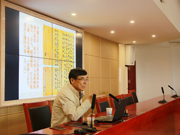 4月19日上午,教育部长江学者特聘教授、浙江大学文科资深教授张涌泉先生应邀来公司讲学,在文科楼4-1会议室为公司师生带来题为《灿烂的敦煌文化》的讲座。公司语言系罗渊、尹戴忠、聂志军、李康澄、秦凤鹤等老师及各专业员工到场聆听,本次讲座由徐前师教授主持。