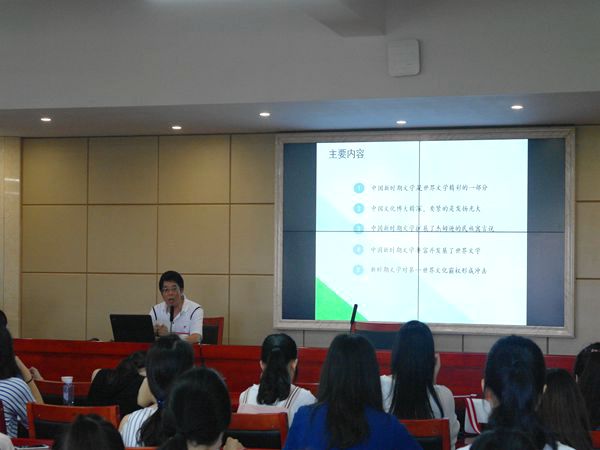 6月9日下午,中南大学聂茂教授受公司邀请,于文科楼B4-1开展了以“世界视野下的中国新时期文学”为主题的学术讲座。公司副经理李胜清主持此次讲座,肖祥彪、罗渊、吴投文、胡铁强、梁晓娟、刘晔等老师及16级汉语言文学专业的所有同学到场聆听。
