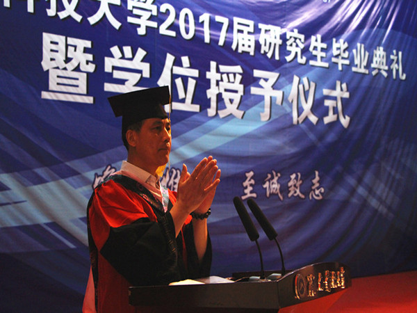 此后,公司吴广平教授作为研究生导师代表上台发言,作题为《独立· 坚持·爱》的主题演讲,对毕业员工顺利毕业表示祝贺。“日月不淹,春秋代序。三年读研时间,转眼而过,你们在科大留下了最青春、最美好、最浪漫、最珍贵的记忆,你如果离开湖南,可能会认为湘潭真是红太阳升起的地方,离别在即,语已多,情未了,以上谈的无非是做老师的对即将离校的同学们的几句老生常谈,是一个老男人的碎碎念。衷心祝愿在座的每一位同学,奔赴祖国各地,母校和老师为你加油,为你骄傲!”吴广平说道并致以在座员工“独立、坚持和爱”这三个词作为临别赠言。