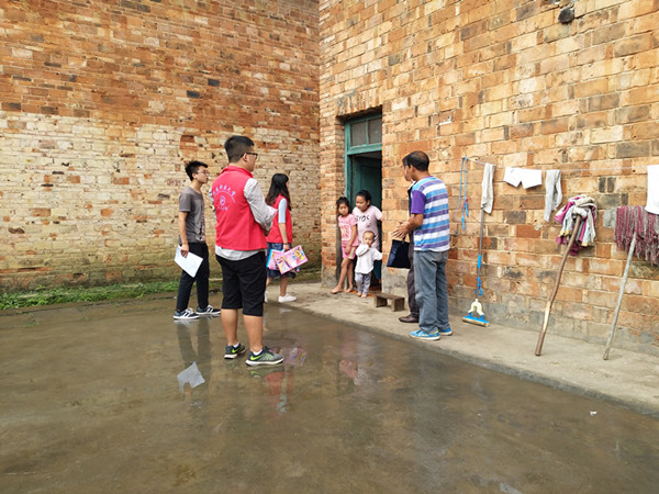 一个穿着绿色条纹衣服的女孩在村书记姚成庚的呼唤声中跑下楼来,带着羞涩的笑。这就是志愿者见到的第一个孩子——姚慧芝。“今年多大?上几年级啦?”钱子凡老师轻轻的摸了摸女孩的头。已上初中的女孩,面对志愿者们有些手足无措。外婆搬来了板凳,操着官话,与志愿者话家常。孩子的父亲去世了,妈妈独自在家做零工抚养俩姐妹……,谈及家里,这个饱经生活沧桑的老人微微耷拉下脑袋。“这一家人挺苦的,父亲一人承担所有开支,赡养年迈的老人,供养正在上学的小孩。”村长徐昌新说道。