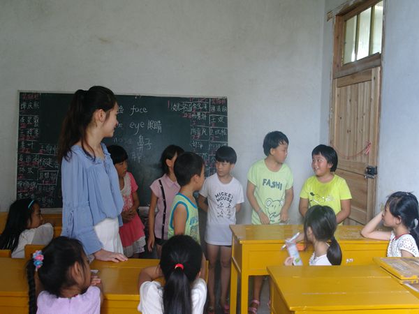 “蒹葭苍苍,白露为霜,所谓伊人,在水一方,溯洄从之,道阻且长……”初三的课堂上,志愿者李煜用简洁易懂、颇具古文美感的方法为孩子们讲解着《诗经·蒹葭》,他鼓励孩子们结合意境,理解晦涩字词,分析表现手法。“我逆着回旋的水流去追寻她,道路艰难而漫长,此句流露出主人公追求意中人而不可得的惆怅。”初三的刘清清表明了自己对诗句的理解。“How old are you?”,“I am eleven years old.”英语课上,志愿者叶甜要求孩子们用英语交流,锻炼口语能力。在她的鼓励下,孩子们踊跃上台对话,兴奋地介绍自己的英文名。六、七年级的教室里,志愿者鞠广政采用公式与题目结合的方式进行几何教学,孩子们则积极与老师互动,用粉笔快速在黑板上写下答案,并自信地走上讲台参照着几何图形讲解自己的解题思路。