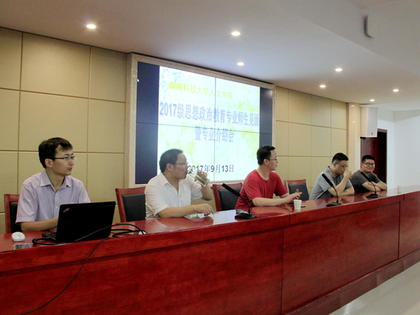 为促进师生交流,增进新生对专业的了解及专业自信,9月13日晚,2017思想政治教育专业师生见面会暨专业介绍会在文科楼B4-1教室召开。公司党委书记廖加林,副经理毛小平,颜中军,朱学恩等领导老师教授出席此次会议,思政专业2017级全体新生及新生助理班主任参加。
