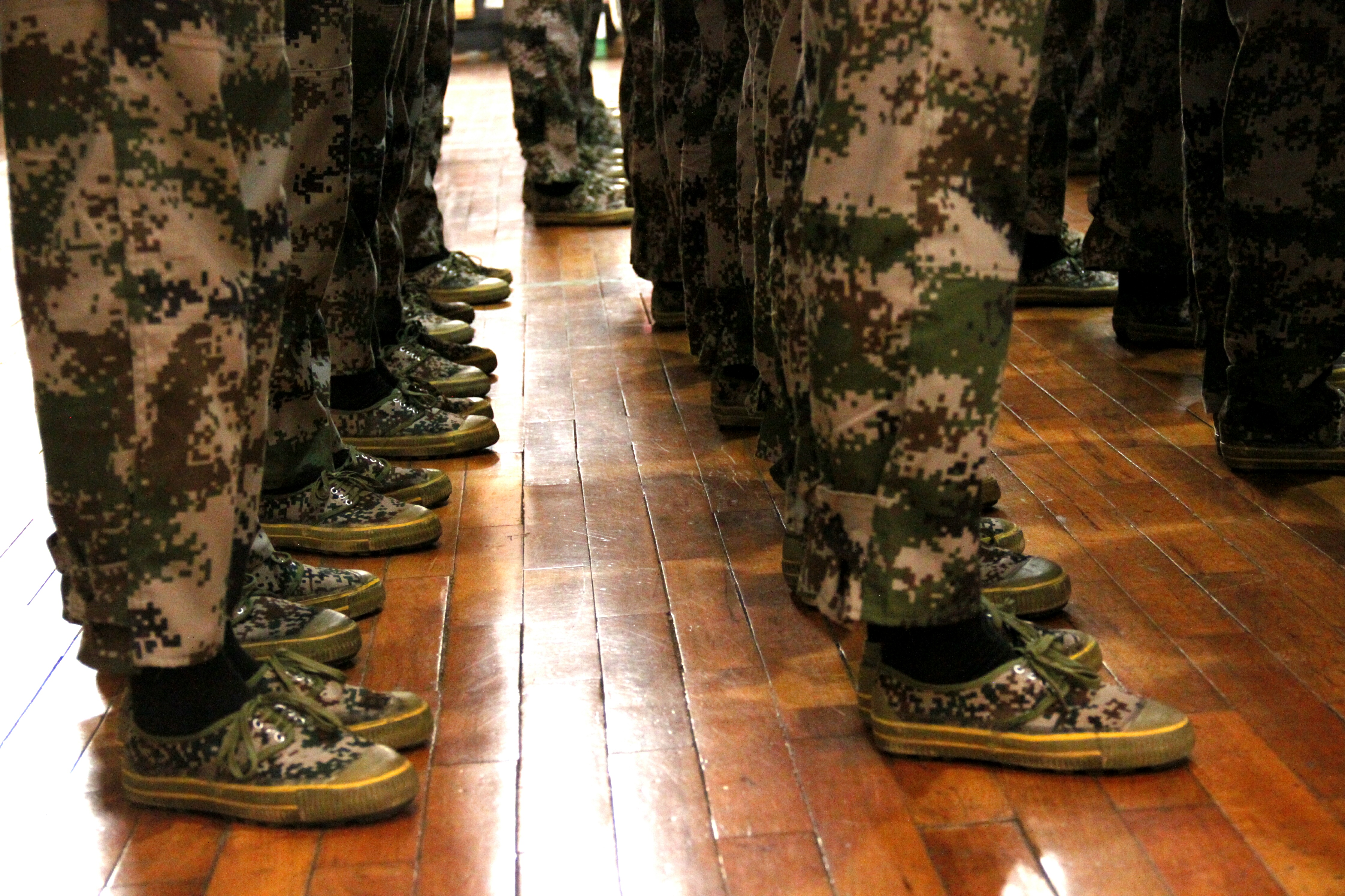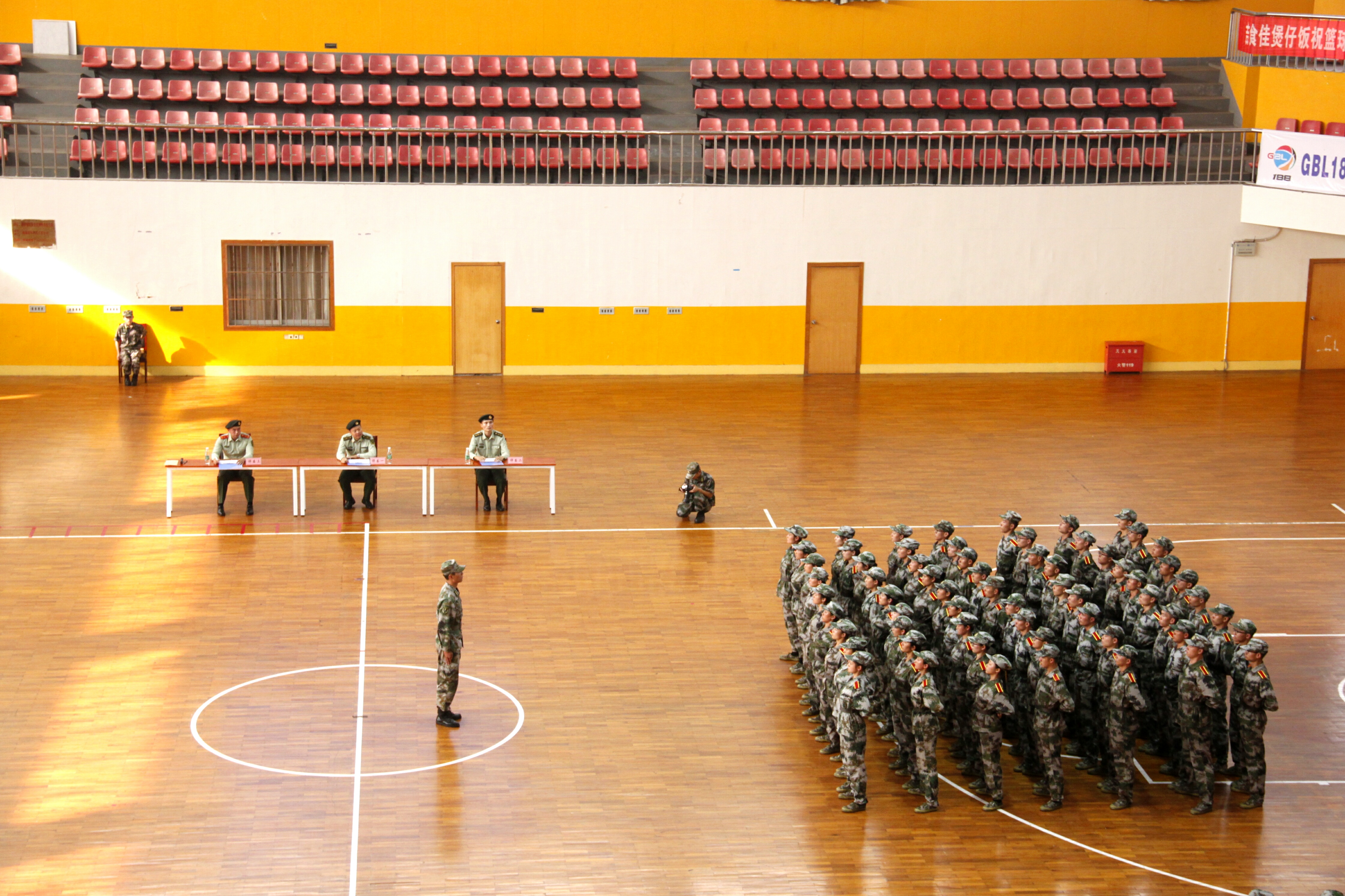 据悉,为保证比赛的客观公正,此次队列会操评比采取抽签的形式,并在评比结束之后公布各个公司的出场顺序。公司作为第三个出场的公司,学员们整装待发。北校篮球馆外,公司方阵队在尹教的带领下早早来到篮球馆外集结完毕,身穿迷彩服的方阵队成员们个个精神抖擞,表情严肃,在教官雄浑嘹亮的口号声中,步调一致地走进体育馆内。新生们整理着装,检查腰带,还不时互相检查军容,为这场队列会操评比做最后的准备。