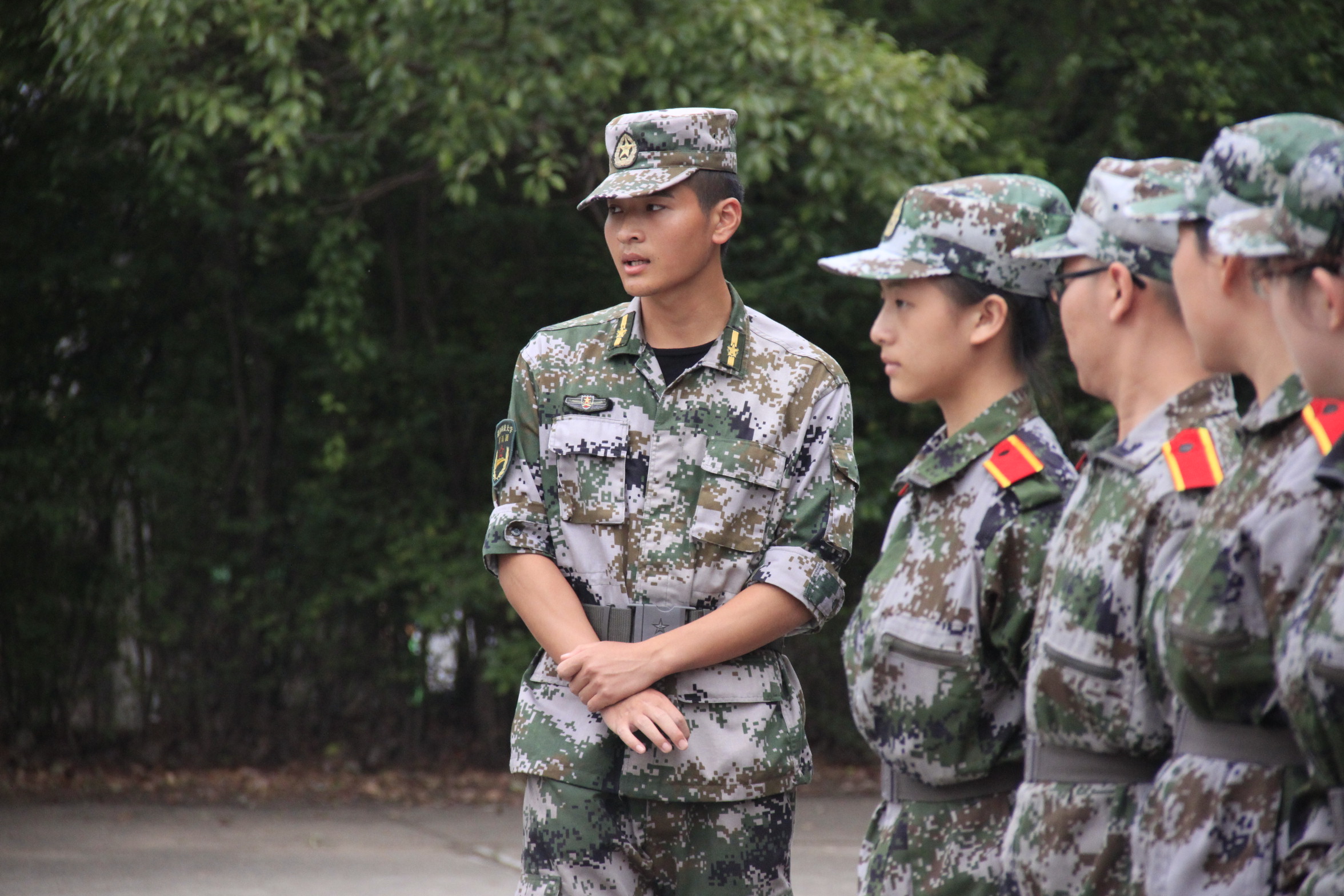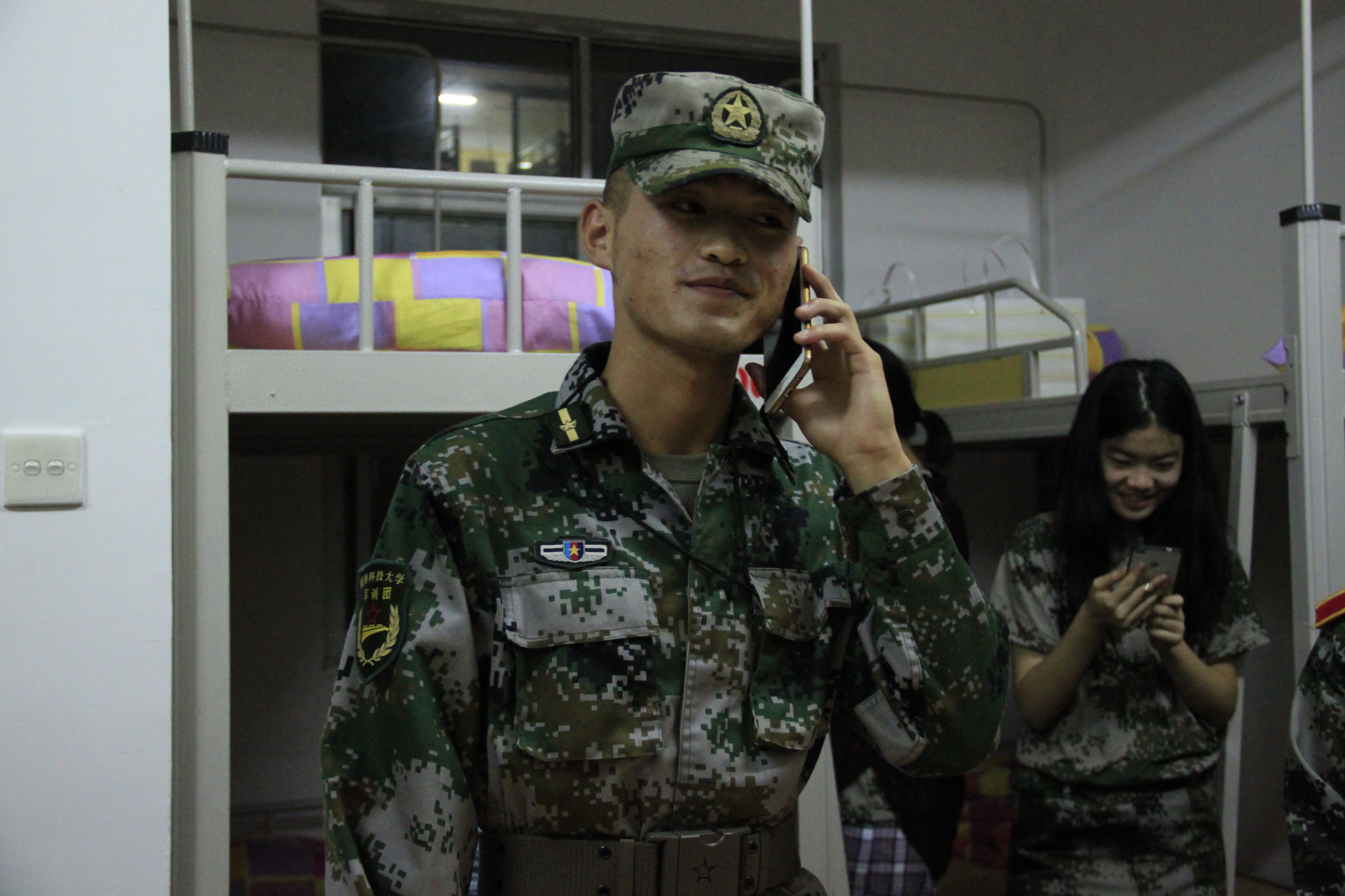 谈到自己印象深刻的事,王教如数家珍。中秋夜下寝时,排里有两个女生过生日,王教就被邀请和他们一起过生日,分蛋糕。每天带训把嗓子喊哑了,排里的女生就准备了保护嗓子的东西给他。“他们真的很贴心,挺感动的。”休息时,王教会让新生们展示才艺,他们有人会唱歌、跳舞,他会仔细看每一篇军训感言,“有的员工还会写诗,挺意外的,他们真的都很多才多艺。”王教认真地夸赞自己排里的新生们。经过一周的训练,王教把大家的进步都看在眼里。“一开始,有些女生们容易有小动作,现在他们都很老实了。体能训练,站军姿也比前好很多。下寝的时候,他们的被子也叠得不错。”