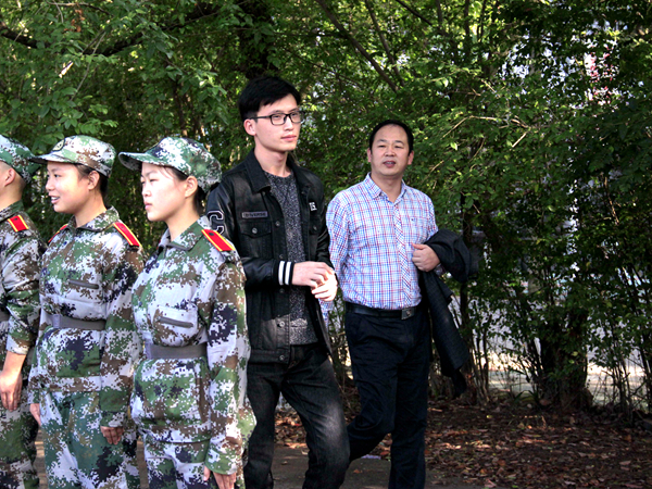 那日,党委副书记邓辉、学工办主任马忠石如往常一般来到训练场视察新生军训。午后,军训场地上日头强烈,热气裹袭。他们顶着太阳走近每个排;尽量不影响新生训练,他们选择在队伍旁一处角落站下,认真观察训练情况。太阳直直地打在他们的脸上,他们额头缓缓沁出滴滴清汗,却丝毫没有察觉;看着各排里员工正步踢得越来越好,军姿站得越来越直。他们脸上,写满了笑容。