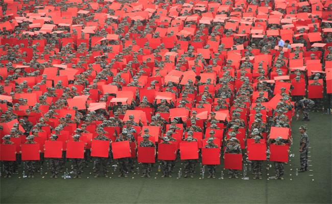秋意来袭,浩荡绿军装大队,在绿荫田径场上,每人高高举起一块块红黄两面的正方形纸板,今年的新生军训队伍要搞怎样的大事情?10月10日,3044永利集团全体新再次集结于北校田径场,参与全校军训新生摆字活动排练。活动现场由老员工军训团四位大四教官指挥,各排教官负责保持各排现场纪律,组织新生根据总指挥进行大规模的摆字排练。
