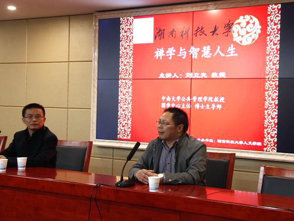 10月13号晚,应公司邀请,中南大学公共管理公司博士生导师刘立夫教授在文科楼B4-1面向哲学、思政专业的同学做了题为“禅学与智慧人生”的学术讲座。讲座由公司党委书记廖加林教授主持,毛小平、颜中军、李育军、凌应生、鲁茜等老师出席了此次讲座。