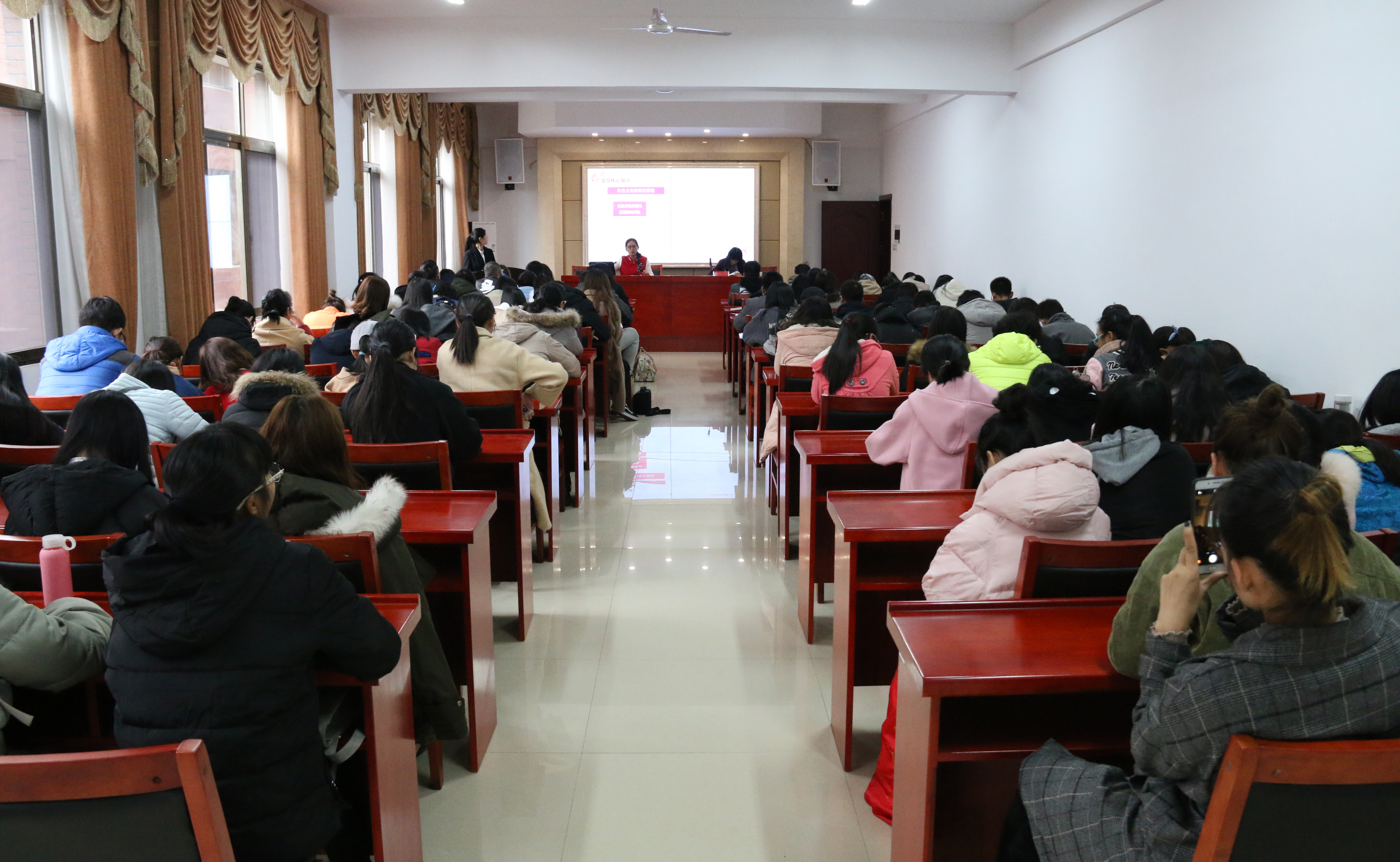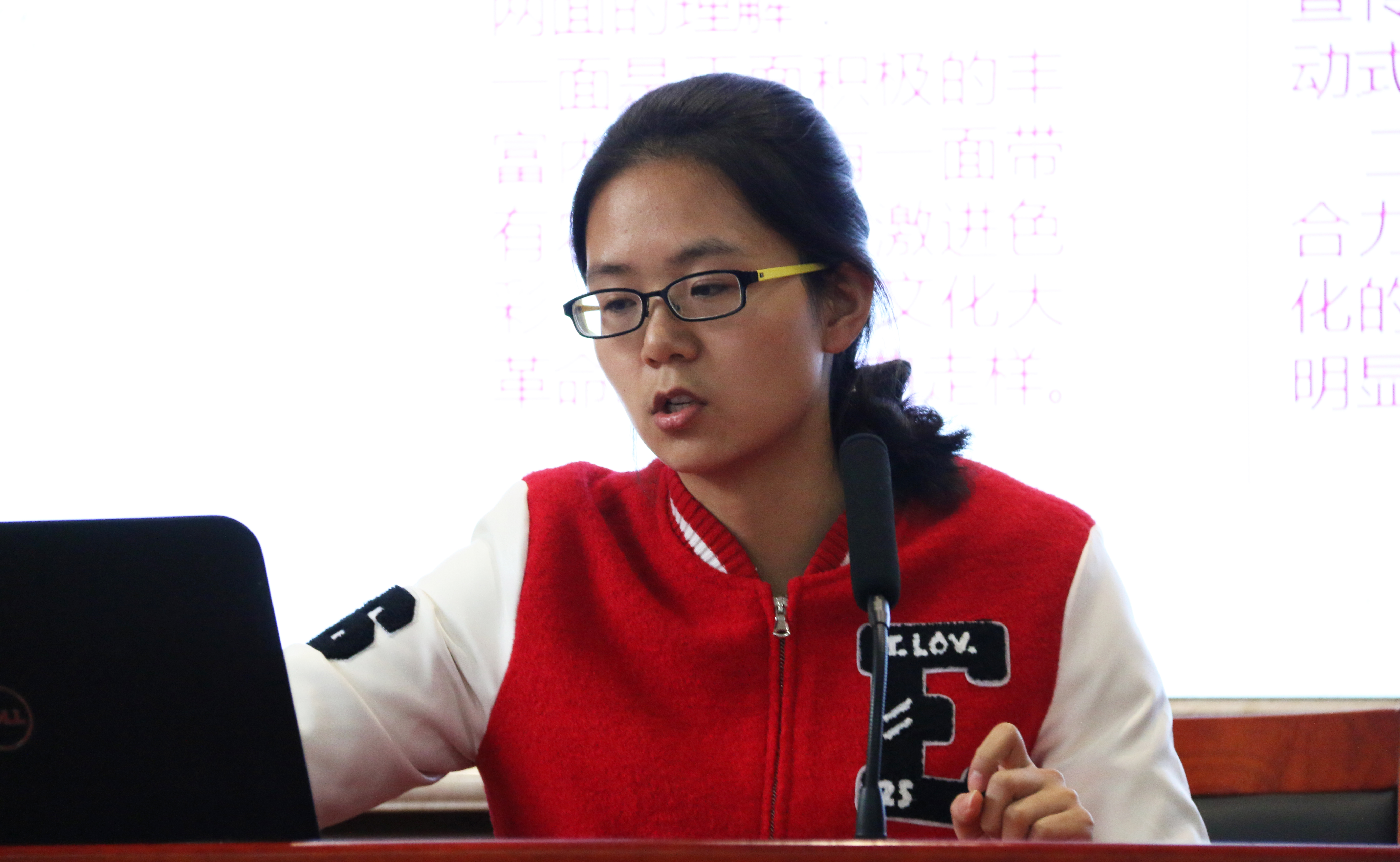 报告会现场,来自湖南大学、中南大学和3044永利集团的七位研究生同学先后对自己的报告进行讲解。“红色在中国人眼中是祥瑞之兆,尚红是中国的传统。”中南大学马克思主义研究生杨柳在本次报告会上对中国的红色文化进行深入讲解,首先介绍古今中外对红色文化的不同理解,着重讲解红色文化的产生、现实困境以及其当代价值。从五四新文化运动时期红色文化的产生到讲述红色文化在当代对教育、文化、精神的影响及价值,其每个方面都有独特的见解。杨柳在报告最后用自己的一句话鞭策在场的员工:“理想若星辰,红星照我去战斗;信念如长风,直挂云帆济沧海。” 文化的创新是在不停地反思与继承中进行的,我们应不断反思自己不断创新发展。