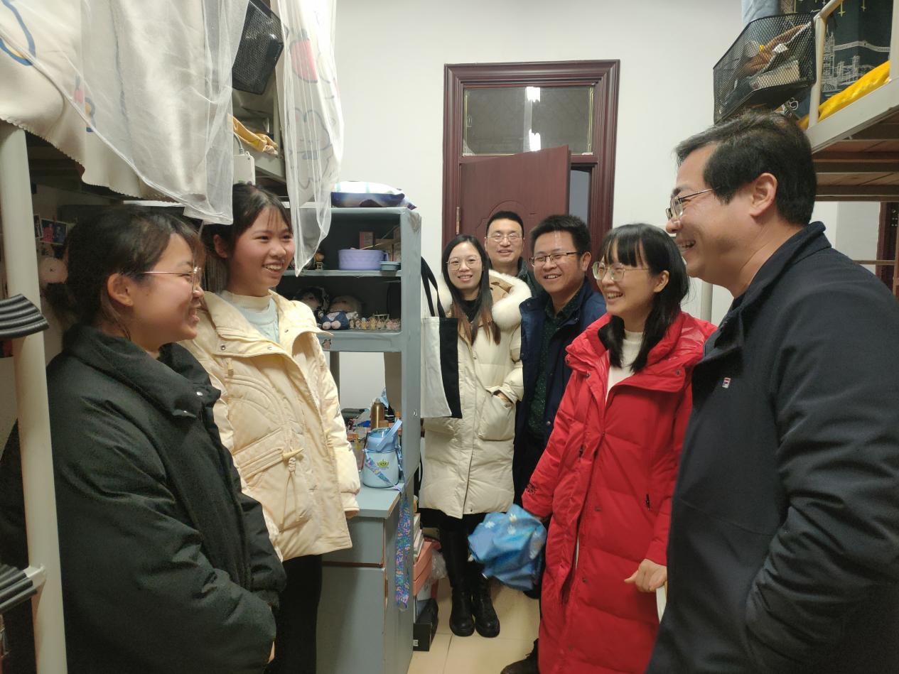 2月12日下午,为进一步了解员工的学习生活状态及宿舍卫生环境,公司党委书记曾志东带领公司全体领导及辅导员前往员工宿舍关心慰问,与同学们面对面交流。