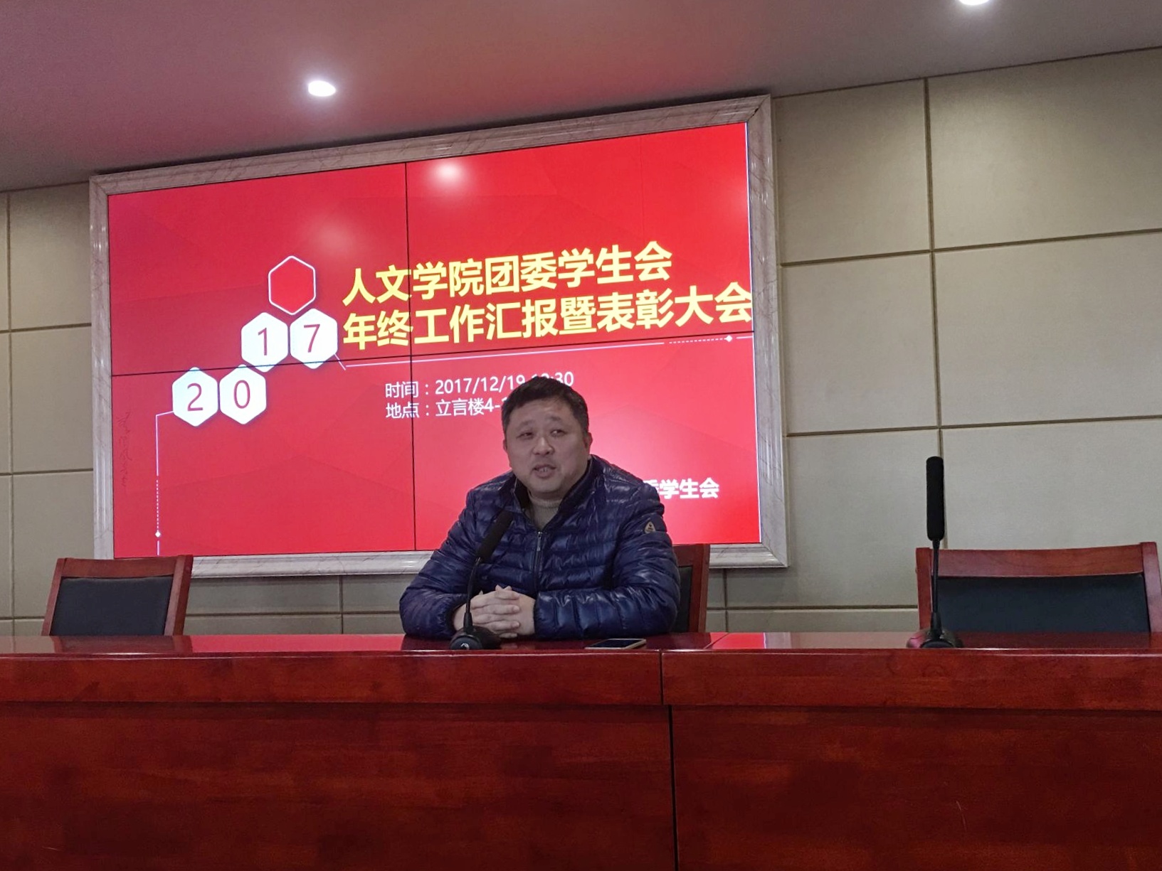 为推动员工会工作顺利开展,更好地激励各部门砥砺前行,12月19日中午,公司于立言楼B4-1室举行2017年团委员工会半年工作汇报暨表彰大会。我公司党委副书记邓辉、学工办主任马忠石、学工办成伟明、赵华、赵晗冰、王嘉敏、钱子凡等领导老师参加,我院团委员工会干部和17级各班班长与团支书到场聆听此次汇报会。