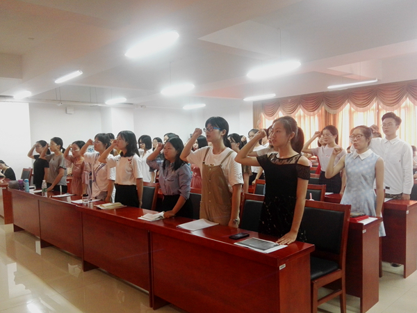 在全体与会成员奏唱国歌后,公司员工党建办公室主任魏璇对本学期员工党建工作进行总结汇报。在党校培训工作方面,公司高度重视并探讨更好的培训模式,并在培训期间对预备党员严格考勤,预备党员也积极配合,努力学习,认真撰写培训心得,达到培训目的,取得了良好的效果。在员工党员发展工作方面,按照公司和党委的要求,坚持“严格标准、规范程序、努力培养、积极发展”的原则认真开展。除此之外,魏璇还从员工党员教育与管理 、毕业生党组织关系转移和档案整理、员工党支部重整等三个方面的工作作出总结。对党支部建设过程中存在的问题提出了相应的改进措施。总结完毕,王雨冰同学带领本学期34名新发展党员面向党旗庄严宣誓,郑思涵、刘倩文带领大家选读党章。