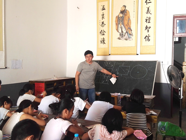 “老师,我知道……”“老师,这个我也知道……”六年级的教室里,员工们个个翘首以盼,争相回答老师提出的问题。他们笔直的坐着,脸上显露着的是他们对知识的渴望。“那么在直角三角形中,知道了两条边怎么求另外一条边呢?”志愿者李锦新用“勾三股四弦五”再一次激起了同学们强烈的求知欲望,“老师你快点说嘛,急死我了。”员工夏芳已经按耐不住要知道答案了。“好,老师这就告诉你们。”李锦新在黑板上划了一个三角形,并详细的给同学们讲解了这个理论。