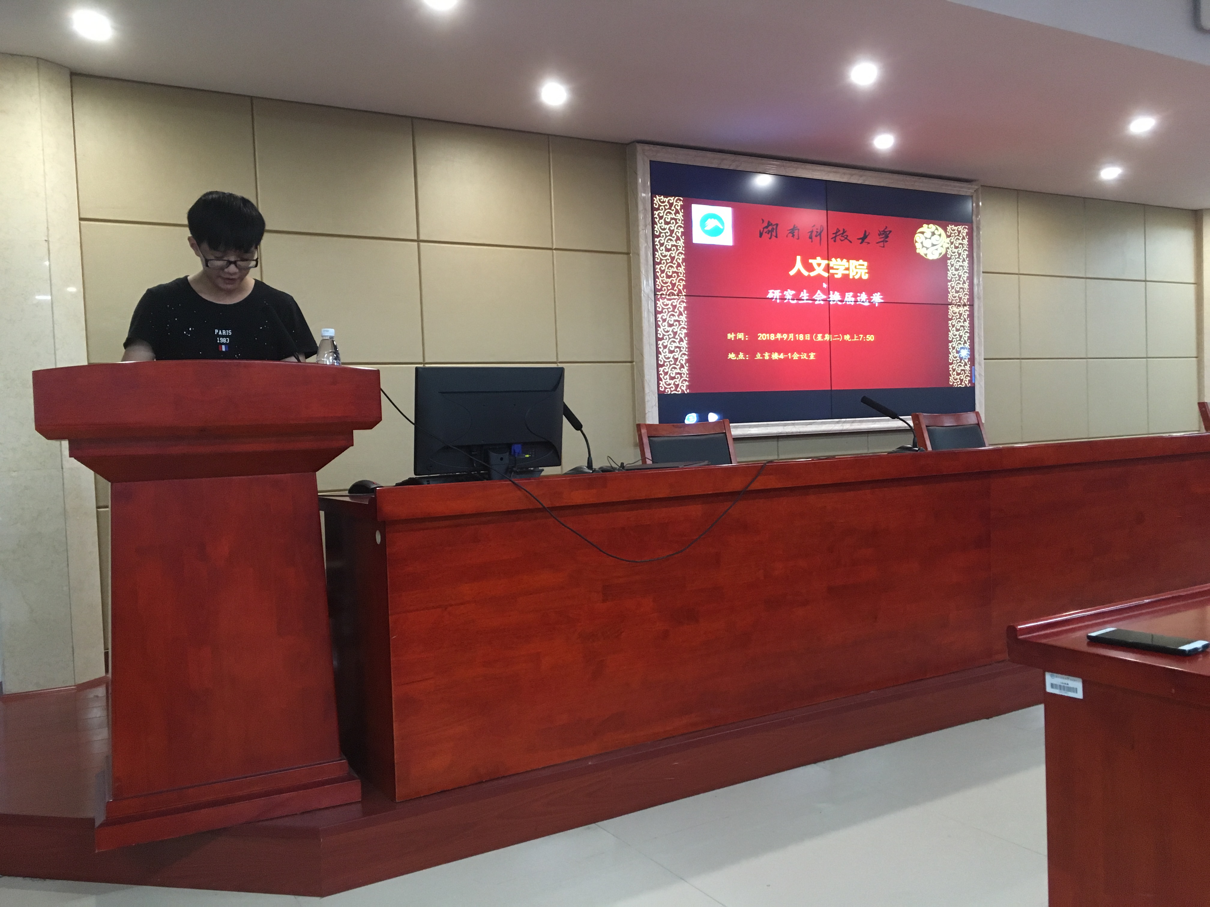 会议主要包括换届致词、颁发聘书、竞选演讲和无记名投票四个环节。会议开始,院研究生会主席邬林明作了关于过去一年的工作汇报。主要包括公司取得的各项优异成绩,以及大家关心的员工评选工作。同时,他还分享了这一年的任职经历,并指出:要懂得善始善终,做一个有责任和担当的研究生会干部。