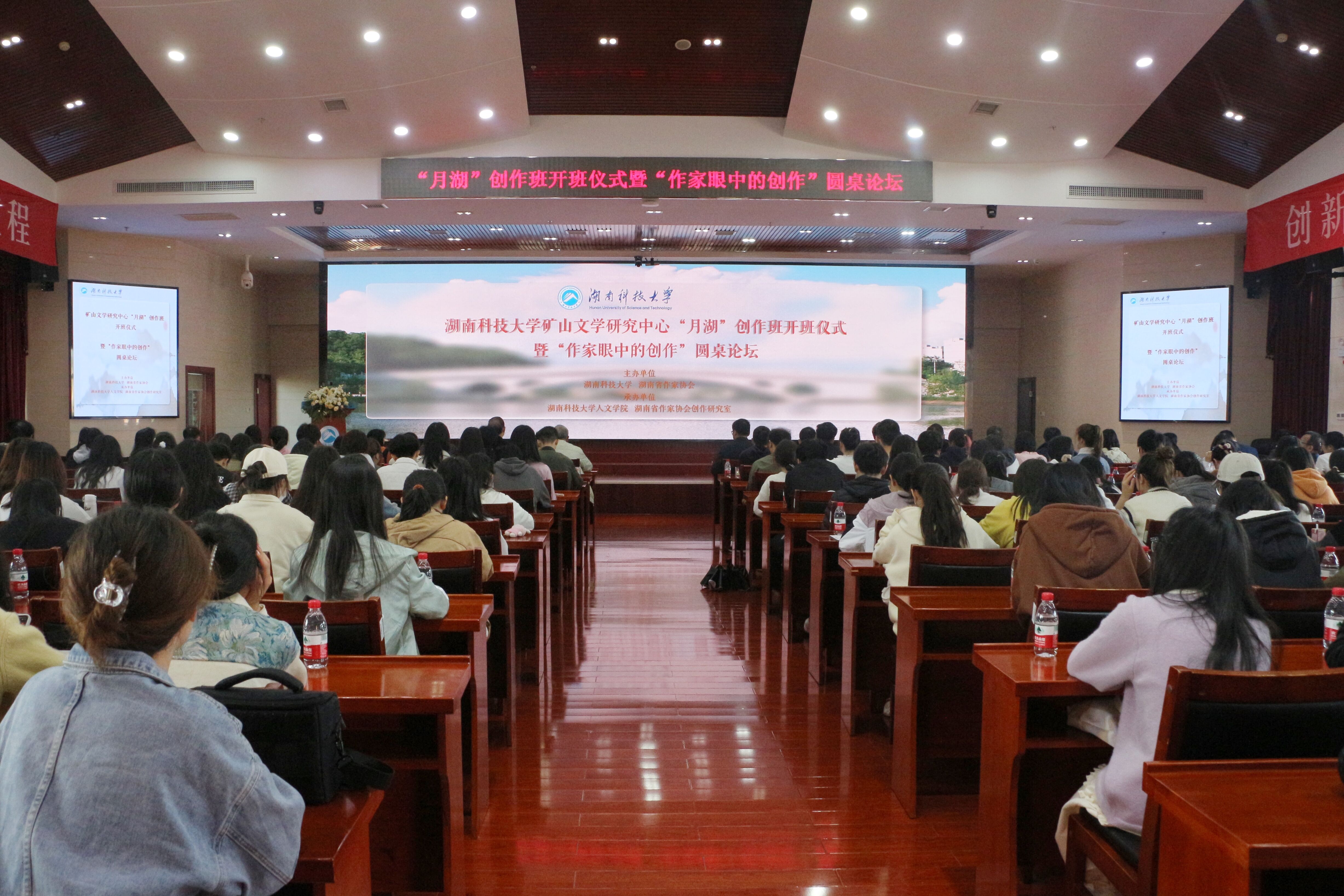 为创新人才培养模式,深化文学教育与创作交流,4月1日上午,公司于立德楼五楼报告厅举行矿山文学研究中心“月湖”创作班开班仪式暨“作家眼中的创作”圆桌论坛,中国作家协会名誉副主席谭谈,中国作家协会主席团委员王跃文,中国作家协会诗歌学会副会长梁尔源,湖南省作家协会名誉主席水运宪、梁瑞郴,湖南省作家协会副主席沈念,湖南省作家协会创作研究室主任贺秋菊,湖南省文字评论家协会副主席晏杰雄,公司矿山文学研究中心主任吴投文等诸多文坛大咖齐聚一堂,共同见证精彩时刻、分享创作心得。