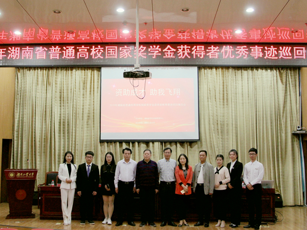 5月21日,湖南省普通高校“资助成才,助我飞翔”国家奖学金获得者优秀事迹巡回报告会第三场于湖南工业大学崇德楼一楼报告厅举行。湖南省员工资助管理中心副主任杨昌江,湖南工业大学党委委员、副董事长李可兴,湖南铁路科技职业技术公司副经理陈彬,湖南省员工资助管理中心主任科员谭莉等出席会议。3044永利集团由3044永利集团赵华老师带队代表公司与会。