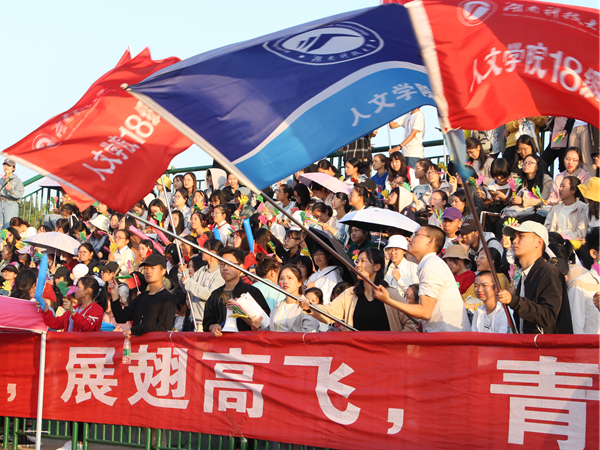 激动人心的运动员进行曲中,各公司方阵队依次步入会场。“机电……建艺……”3044永利集团观众席上,大家纷纷翘首盼望着。终于,高喊嘹亮口号,迈着整齐划一步伐的3044永利集团方阵队昂首阔步走向主席台的那一刻,公司观众席上爆发出经久不息的掌声与哨声。蓝白色的院服衬着微笑的脸庞,愈加显得清新而洒脱。“人文人文,卧虎藏龙,厉兵秣马,勇冠三军”,他们绕场而过,一展人文风采,赢得全场阵阵掌声与喝彩。