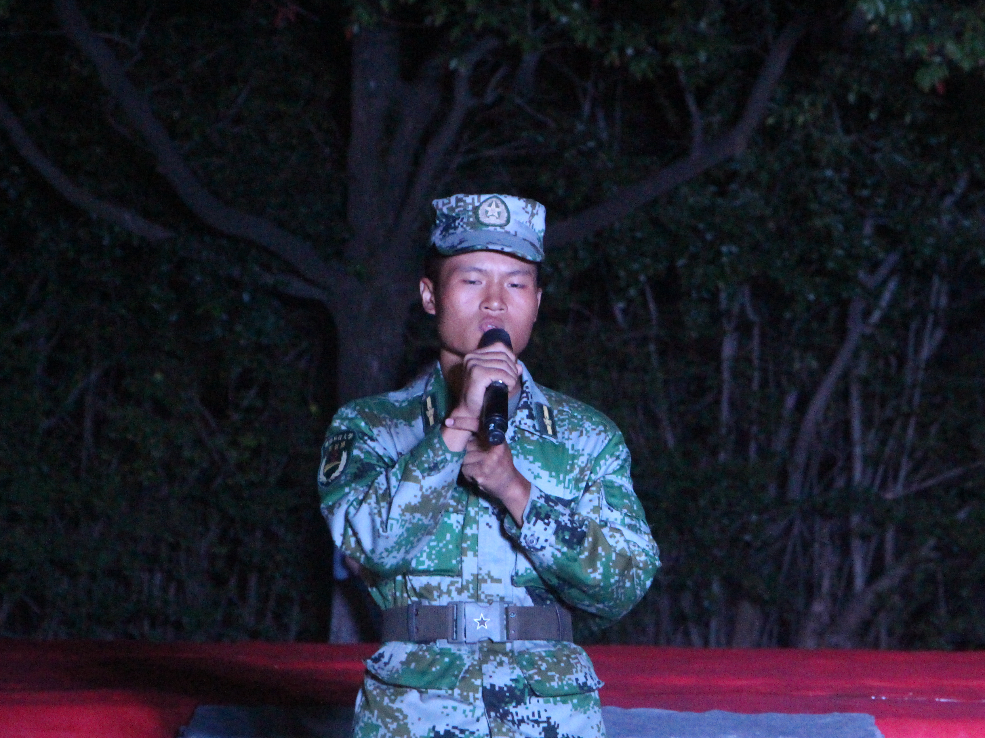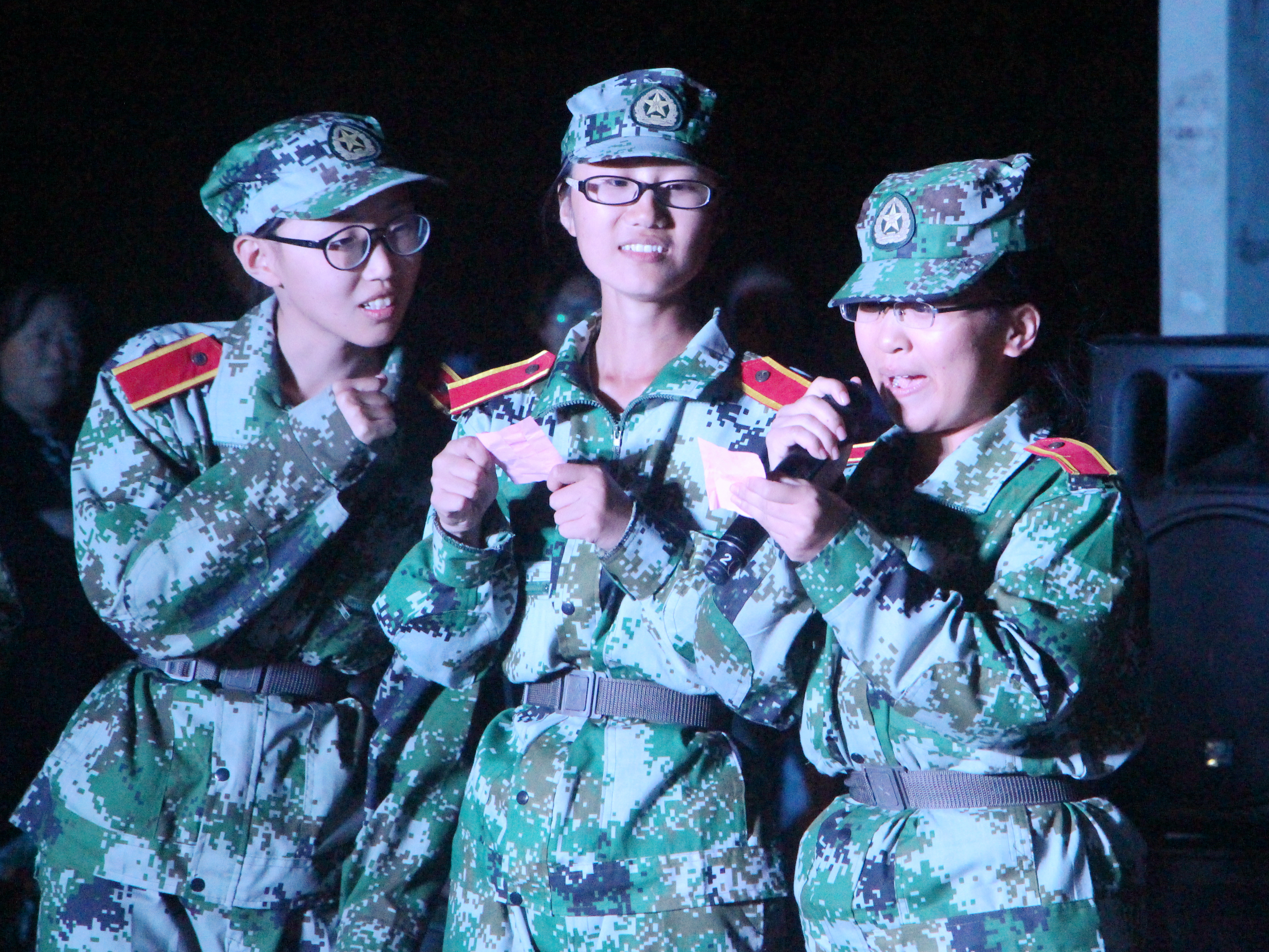 10月11日晚,由公司社联部、语言艺术部联合举办的2018级军训慰问演出在全院新生殷切期待中于北校旧篮球场正式开始,晚会由靳江北、许昕悦主持。18级辅导员何舒香及全体教官、新生到场观看演出。