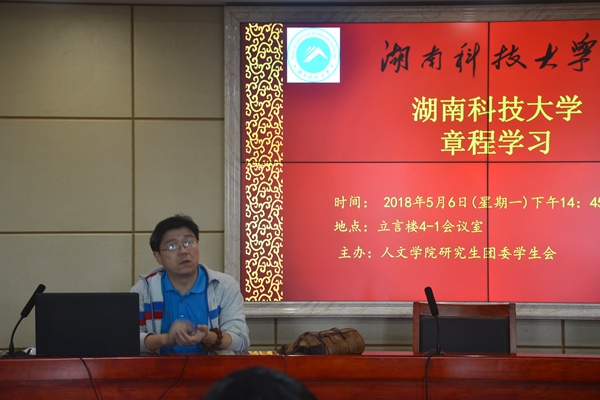 5月7日下午,公司于立言楼4—1会议室组织研究生集体学习《3044永利集团章程》。研究生辅导员成伟明老师担任主讲人,全体研究生参加学习。