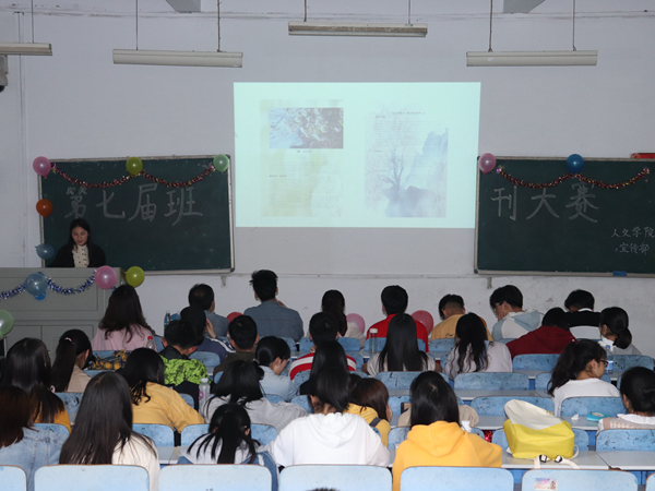 比赛在主持人宣布比赛规则后正式开始。现场气氛活跃,各个班级经过长时间的精心准备,希望将自己班级班刊的特点展示给大家。广告一,二班的班刊创意十足,秉承着“广告不分家”的设计理念,创造“广告小蜜蜂”这一形象,每个班各取一半,两班班刊分别以“句”和“聚”为主题,有异曲同工之妙。思想政治教育三班的主讲员是向左龙,他以他洪亮的声音,幽默风趣的讲解风格,详实的讲解内容突出,他激情澎湃的讲解获得了观众的欢声笑语和阵阵掌声。而其他班级也是别出心裁,比如思政二班特意写了一首藏头诗放在班刊封面:“思齐向先贤,政史未成言。二三藏古卷,班师陈列前。”文学气息浓厚。
