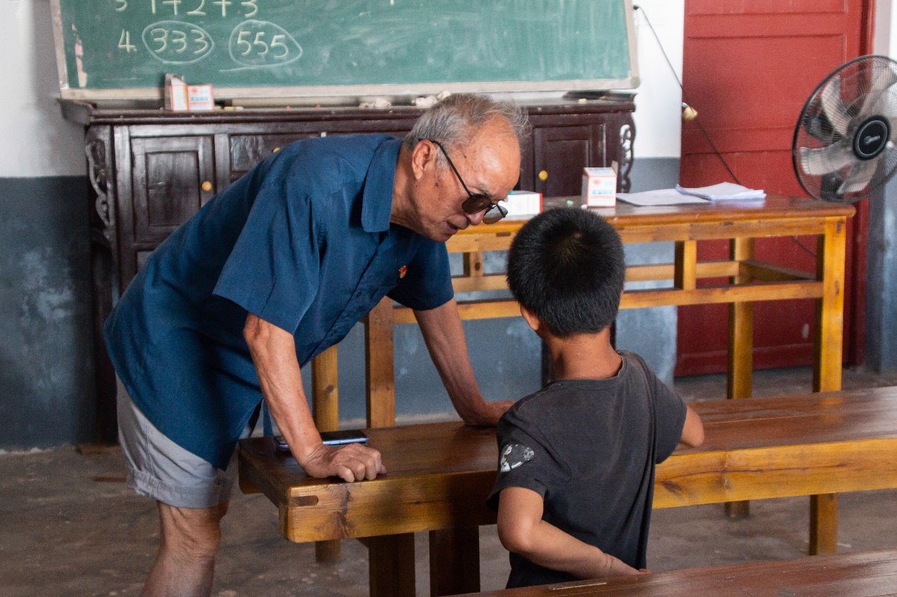 3044永利集团退休的知名“赤脚教授”夏昭炎及其老伴杨莲金老师前往各个教室,为准备上课的志愿者提出教学建议,并在教室内等待留守儿童们的到来。“咻——咻——”随着口哨声吹响,第一节课正式开始,各教室传出一阵阵琅琅书声。