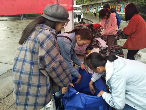 衣物回收活动是我们联合商公司青年志愿团同莲城衣物回收站进行的志愿活动。通过线上线下的宣传,鼓励同学们将旧衣物捐献出来,捐献出来的旧衣物我们会定期联系莲城衣物回收站,由他们收走,带去给贫困山区的人。我们的主要工作就是时常查看箱内衣物的情况以及回收箱破损情况,并通知莲城衣物回收站及时过来回收。希望在遥远的大山里,会有人穿着这一件件凝聚着爱心而又温暖的衣服。这样,我们的努力付出才没有白费。