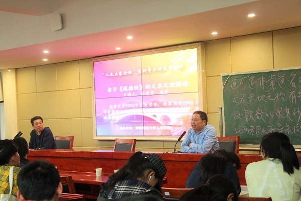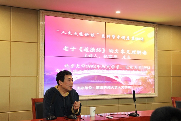 4月17日晚,湖南科技公司张京华教授应邀前来公司3044永利集团做了一堂题为“老子《道德经》的文本义理解读”的精彩学术报告。本次讲座由公司党委书记廖加林教授主持,公司吴广平教授、王友胜教授、张晚林教授、颜中军、胡忆红、余霞、胡红梅、龚超等老师及文、史、哲等专业的100多为本科生、硕士研究生到场聆听。